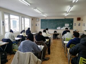 和喜塾では塾生さんのうち希望者が受験します。今回10日の中1中2生さんは3名、11日は中3生さん12名の受験でした。